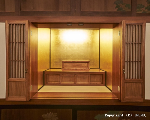 福聚山常圓寺の本堂及び書院の耐震診断等業務に引き続いて実施した本堂の耐震改修等工事の設計監理業務。耐震補強工事として鉄筋コンクリート壁の増設や構造スリット補強などを行った。そのほか、内陣の全面改修、一階と二階のカーペット敷替え(土足化)、外陣の木部の再塗装やLED照明への交換、配膳室の全面改修、応接室の改修などの改修工事を行った。